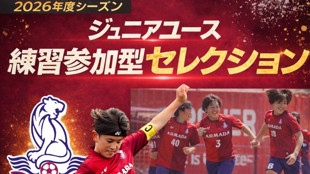 ARMADA FC は、2026年度シーズンに向けた「ジュニアユース練習参加型セレクション」を開催いたします。 本セレクションは、いわゆる一発勝負の選考ではなく、実際のトレ… -